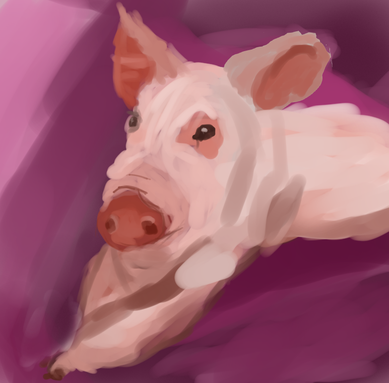 A digital painting of a pig. I wanted to try painting, which I'll later get more into.