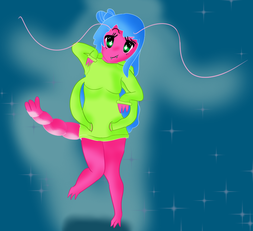 a drawing of my sea sona, Billie the Shrimp!