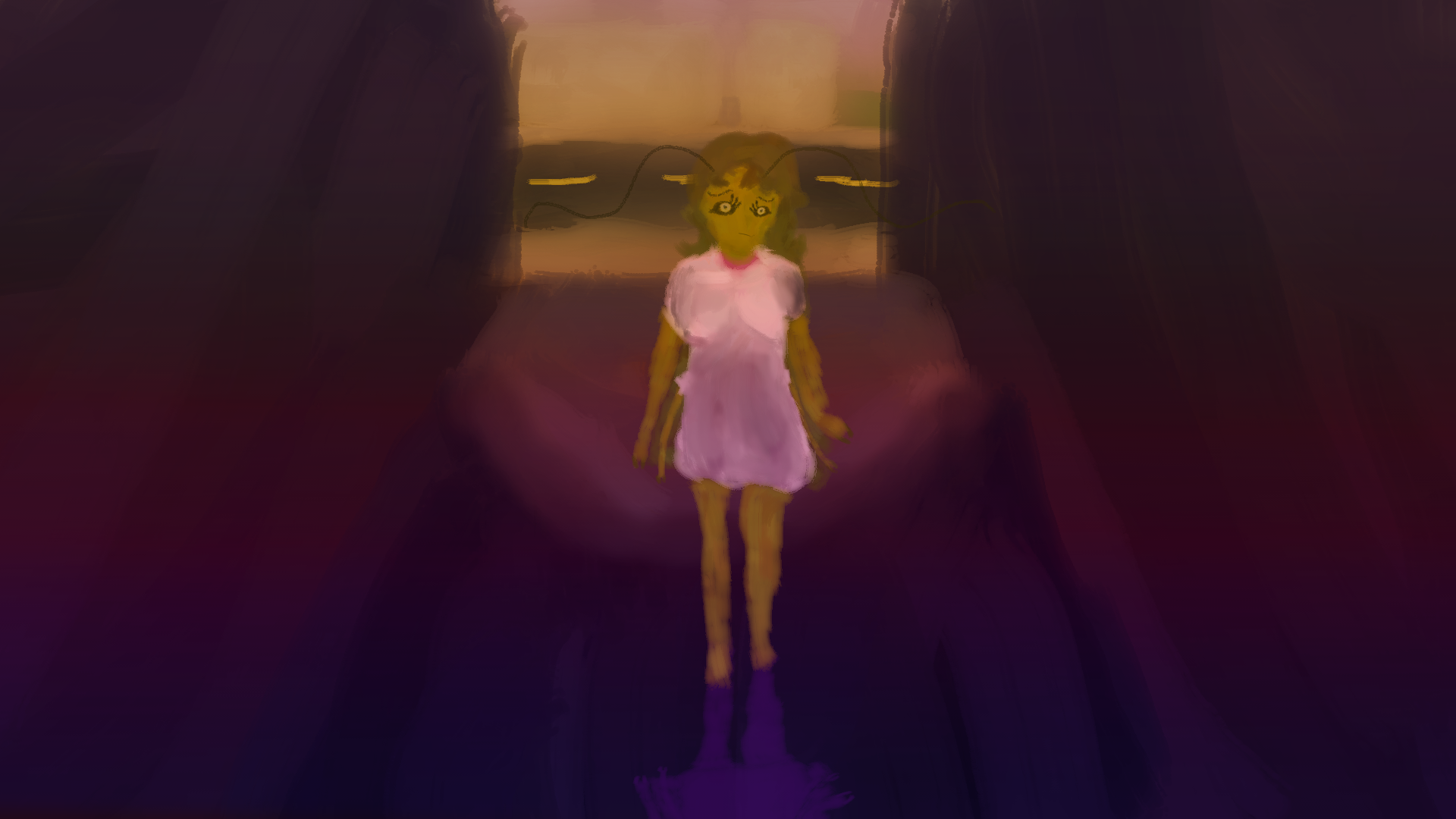 A painting of my new bug sona, Crunchy! Also expiermented around with perspective